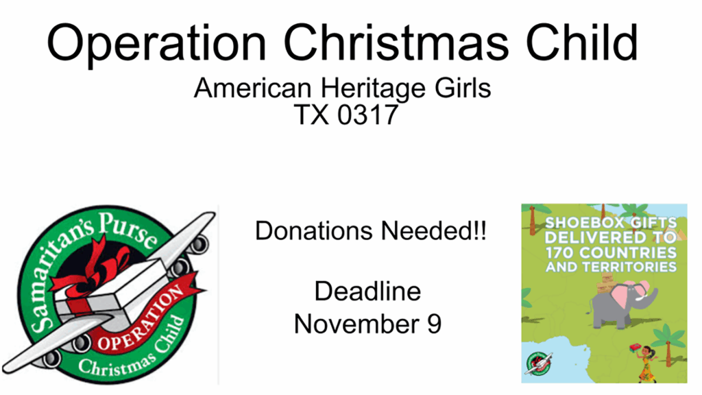 Two of our girls are organizing a service project and are eager to involve the Memorial Community in their efforts. If you would like to contribute items, please bring them to the designated box in the Welcome Center. Click the button below to view the flyer listing suggested items from the Samaritan’s Purse Operation Christmas Child program.